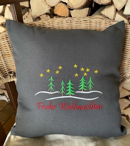 Kissen Frohe Weihnachten 40x40cm,besticktes Kissen,Bio-Baumwollqualität,leichte Struktur,UNIKAT,Weihnachten,Dekokissen,Bezug,Geschenk,Tanne