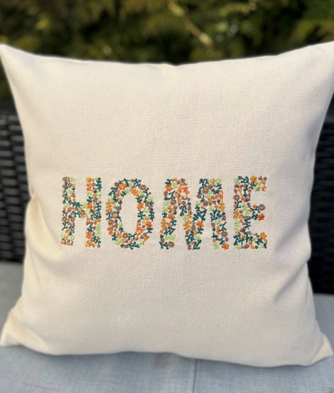Kissen Home 40x40cm,besticktes Kissen,Bio-Baumwollqualität,leichte Struktur, Blumenstick, Zuhause