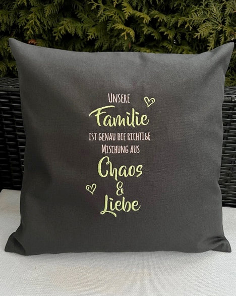 Kissen Familie, 40x40cm, besticktes Kissen, Bio-Baumwollqualität, UNIKAT, Home, Zuhause, Bezug, Liebe, Kopfkissen, Herz, Geschenk