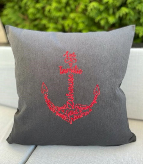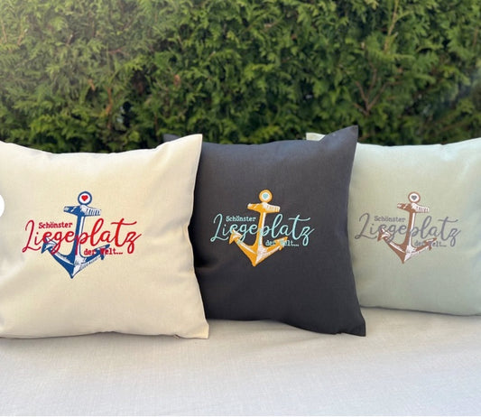 Kissen bestickt, 40x40cm, Maritim, Anker, Lieblingsplatz, Bio-Baumwollqualität, UNIKAT, Home, Zuhause, Bezug, Liebe, Kopfkissen