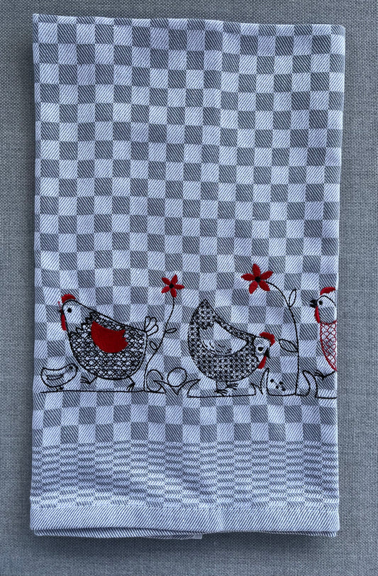 HÜHNER - Geschirrtuch bestickt, Küchentuch, Küche, Geschenk, Geschenkidee, Einladung