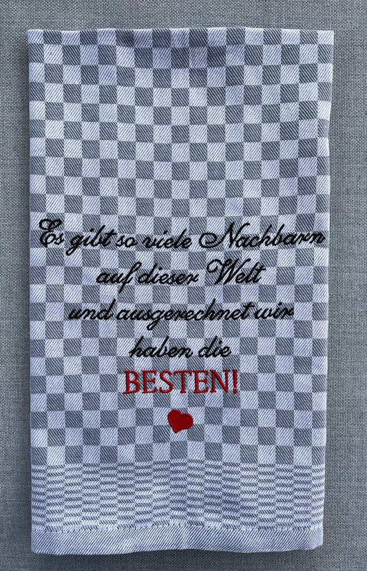 NACHBARN - Geschirrtuch bestickt, Küchentuch, Küche, Geschenk, Geschenkidee, Einladung