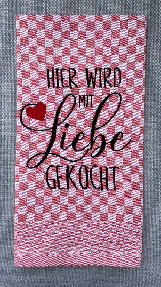 MIT LIEBE GEKOCHT - Geschirrtuch bestickt, Küchentuch, Küche, Geschenk, Geschenkidee, Einladung
