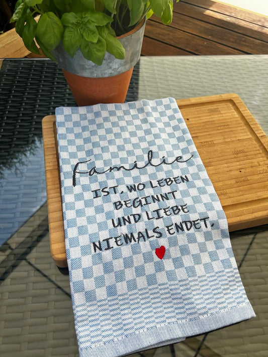 Geschirrtuch bestickt, Küchentuch, Familie ist...., Küche, Geschenk, Geschenkidee, Einladung