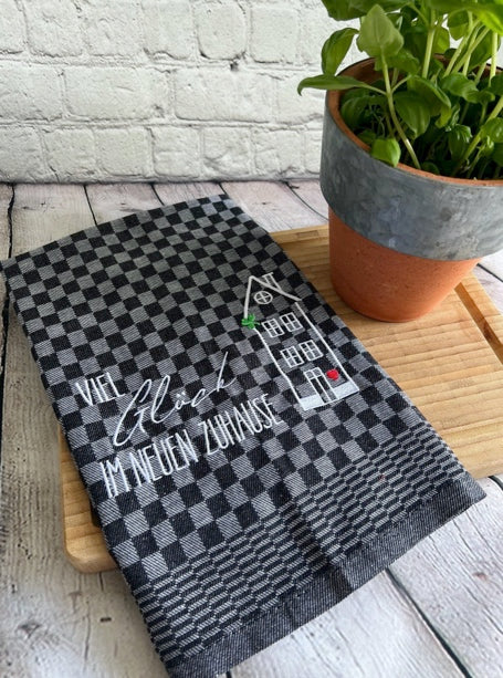 Geschirrtuch bestickt, Küchentuch, Einzug, Umzug, Geschenkidee Eigenheim
