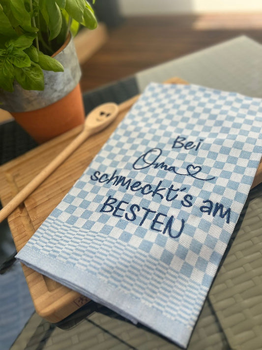 Geschirrtuch bestickt, Küchentuch, Bei Oma schmeckt's am Besten, Küche, Geschenk, Geschenkidee, Einladung