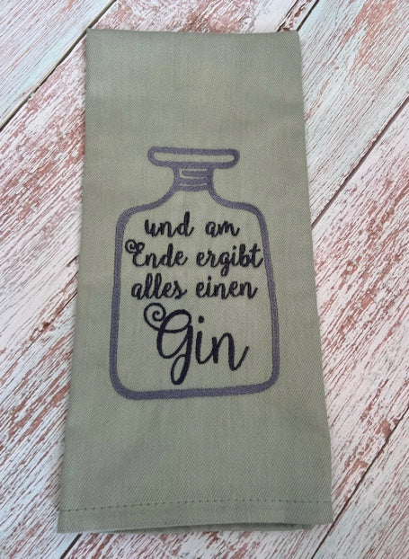 Geschirrtuch bestickt, Küchentuch, Spültuch, Gin, Spruch, Geschenkidee