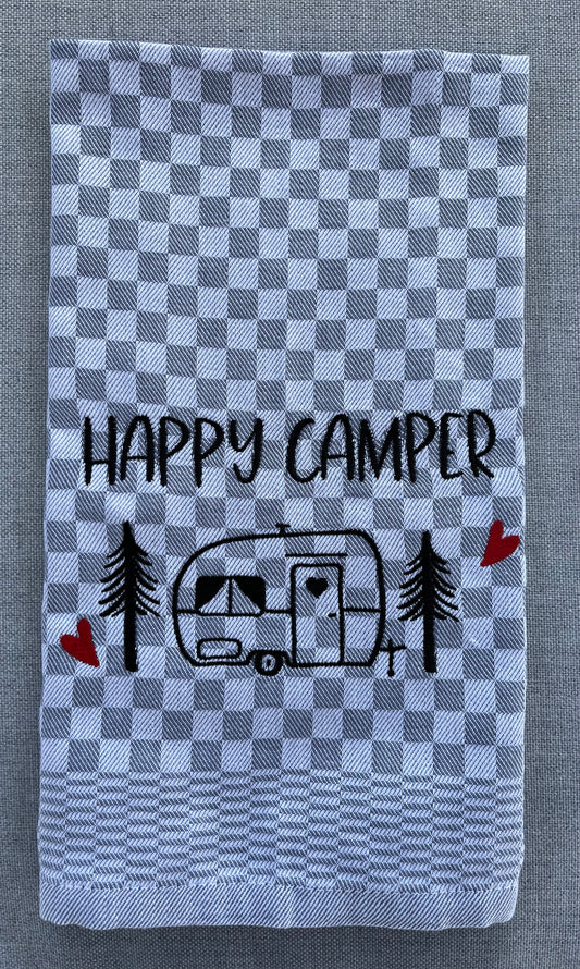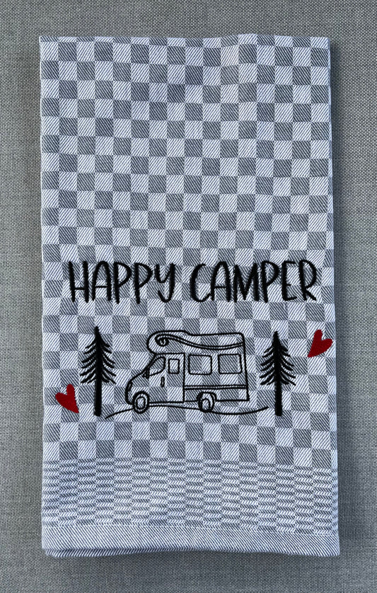 HAPPY CAMPER/WOHNWAGEN - Geschirrtuch bestickt, Küchentuch, Küche, Geschenk, Geschenkidee, Einladung