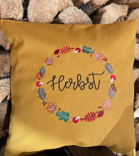 Kissen Herbst 40x40cm, bestickt, Ranke, Schriftzug, Blätter, Herbstdekoration