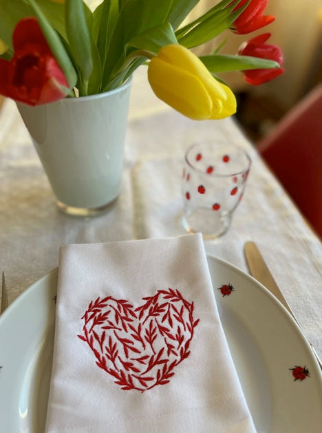 Stoffservietten 2tlg., 40x40cm, Damast, Baumwolle, weiß, Herz, Ranke, bestickt, festlich, Tischdekoration, Set, Tischwäsche, Heimtextilien