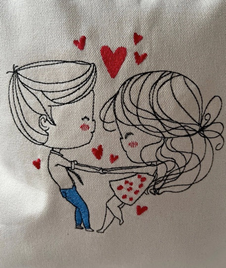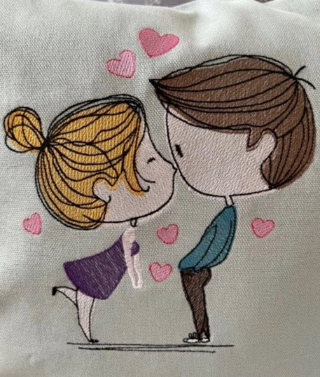 Kissen küssendes Paar 40x40cm,besticktes Kissen, Bio-Baumwollqualität Hochzeits-Geschenk, Valentinstag, Liebe, Hochzeitstag