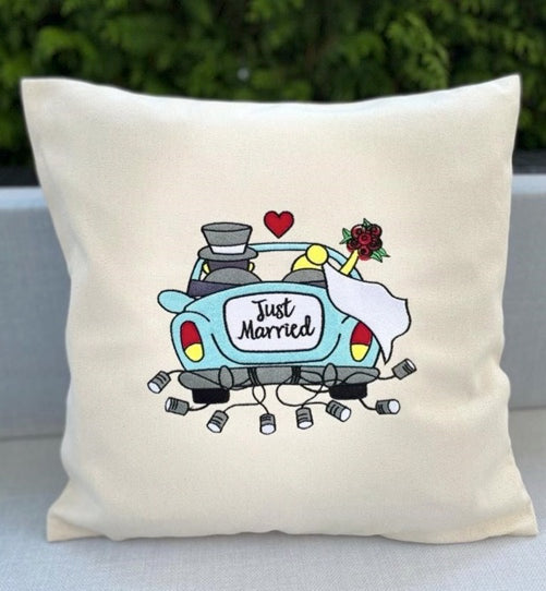 Kissen Just married 40x40cm,bestickter Kissenbezug,Bio-Baumwollqualität HOCHZEIT,UNIKAT,Geschenk,Hochzeitspaar,Hochzeitsgeschenk,Auto