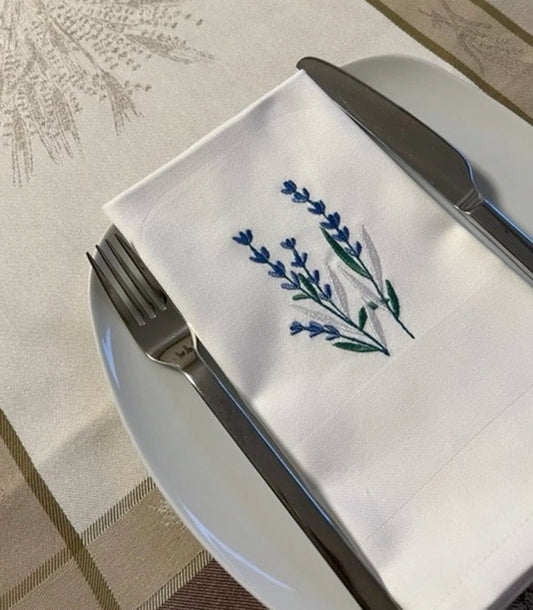 Stoffservietten, 40x40cm, Baumwolle, Lavendel, bestickt, festlich, Tischdekoration, Set, Tischwäsche, Heimtextilien, weiß