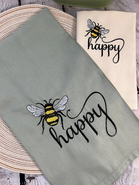 Geschirrtuch bestickt, Küchentuch, Geschenk, Biene, Behappy, Geschenkidee