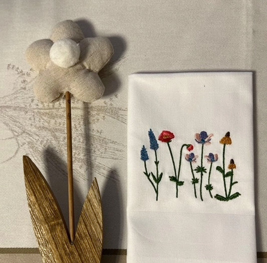 Stoffservietten, 40x40cm, Damast, Baumwolle, weiß, Blumenwiese, bestickt, festlich, Tischdekoration, Set, Tischwäsche, Heimtextilien