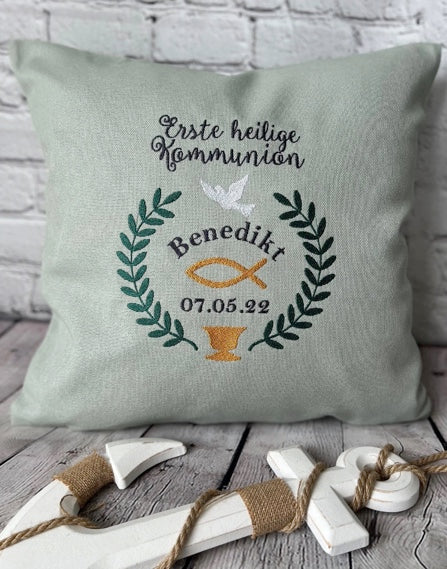 Kissen bestickt, Kissenbezug Kommunion, personalisiert, Kissenhülle