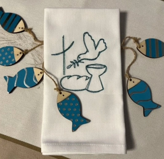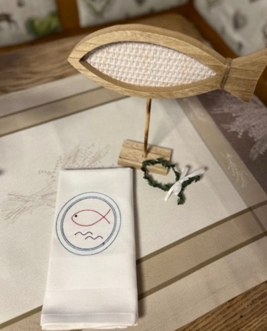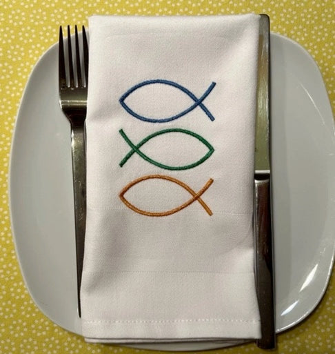 Stoffservietten bestickt, 40x40cm, Kommunion, Taufe, Firmung, festlich, Tischdekoration, Set, Tischwäsche, Heimtextilien, Baumwolle