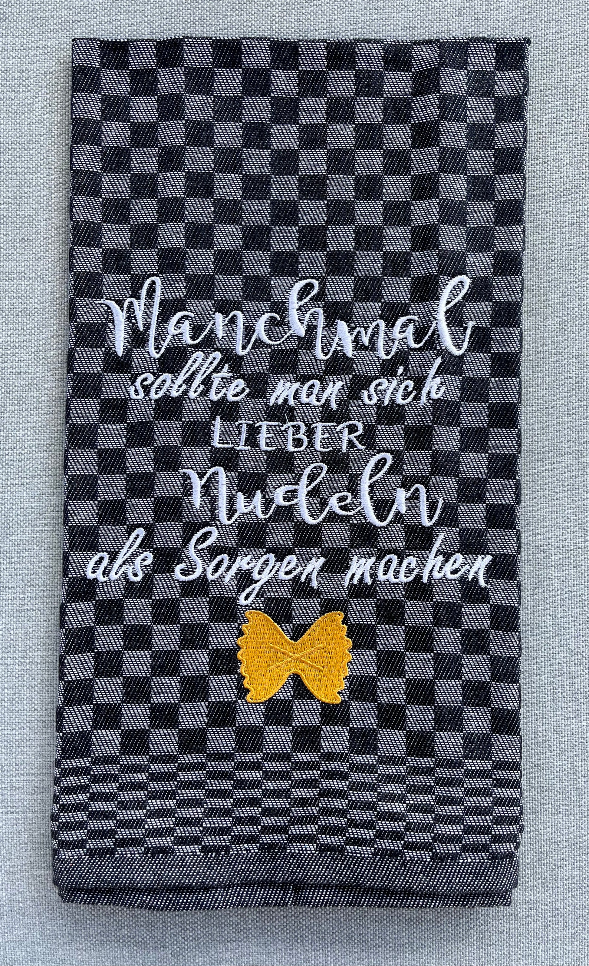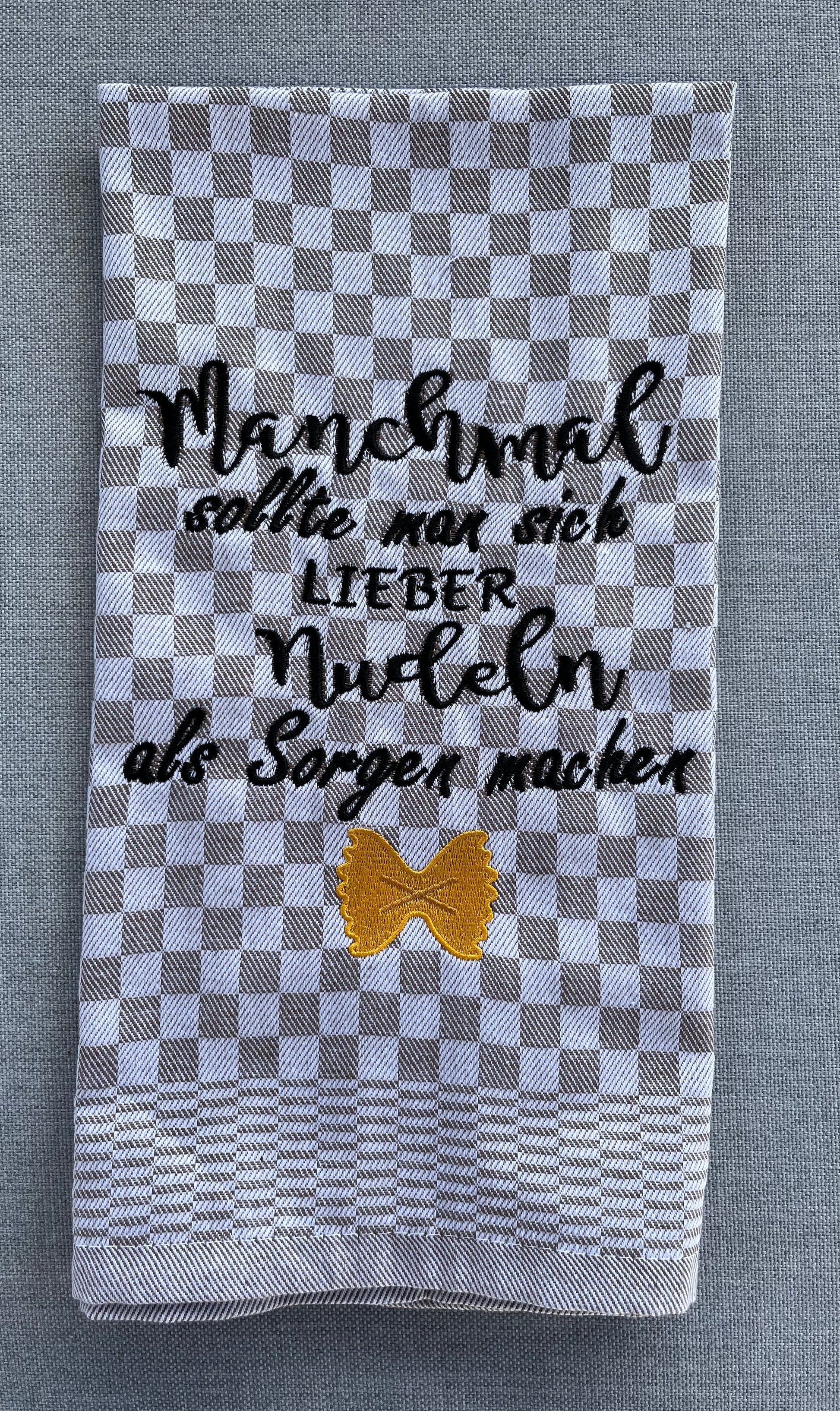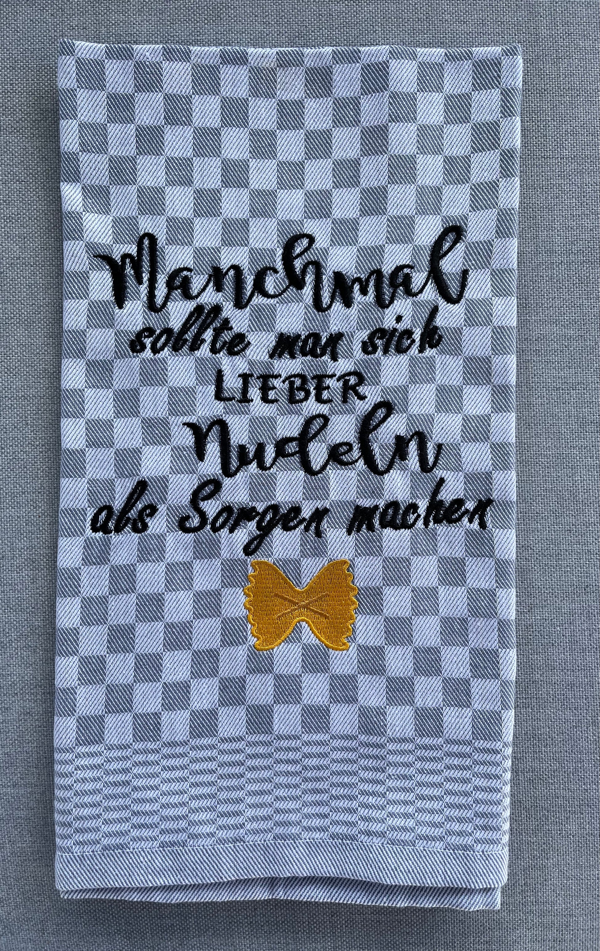 NUDELN - Geschirrtuch bestickt, Küchentuch, Küche, Geschenk, Geschenkidee, Einladung