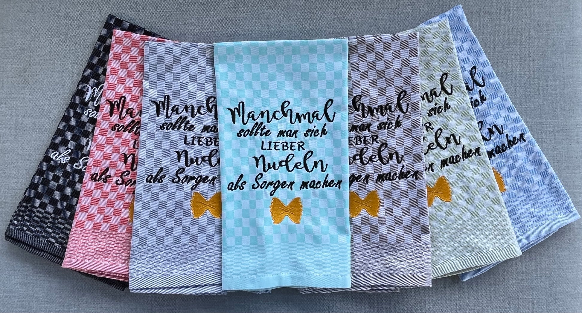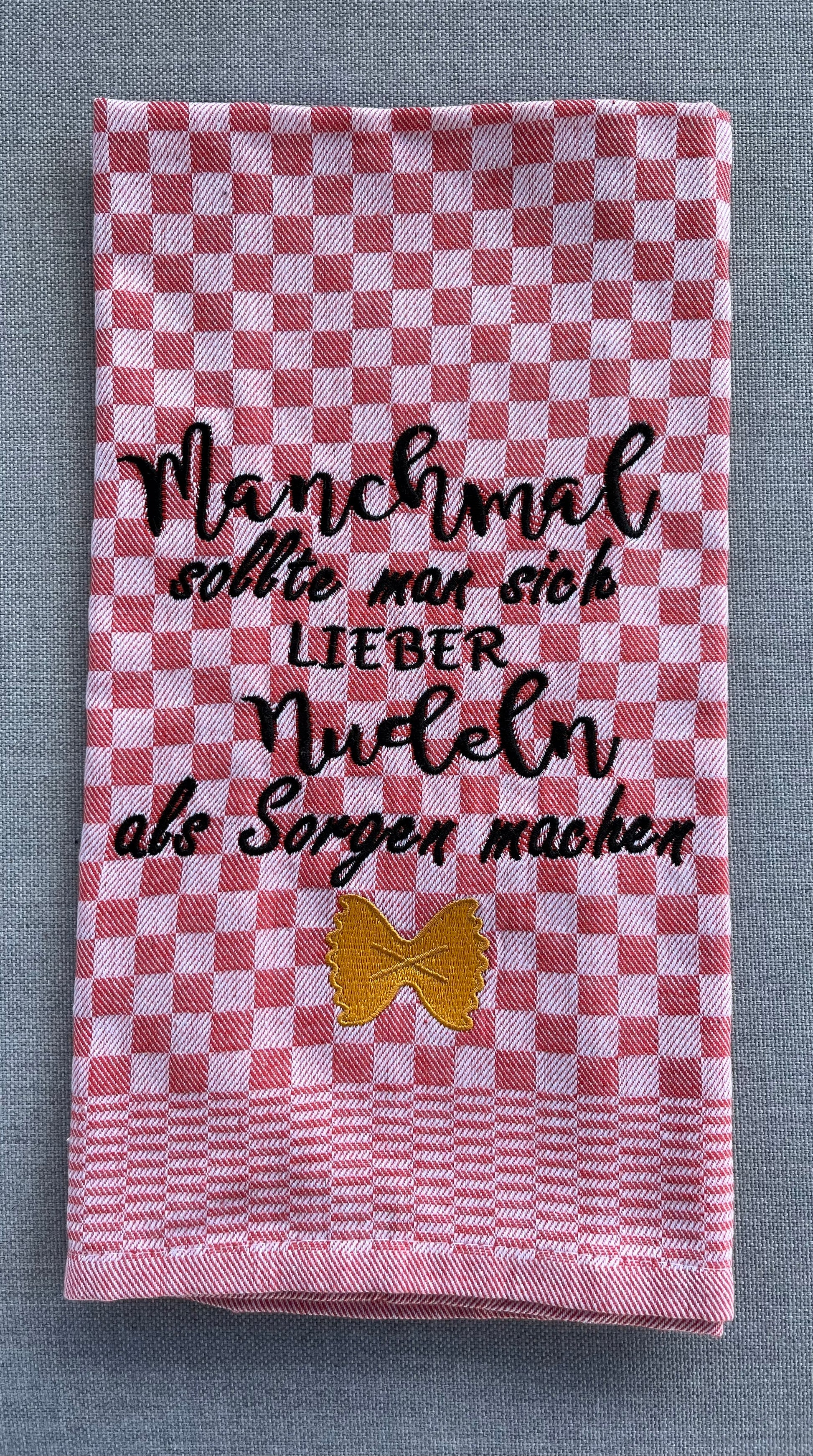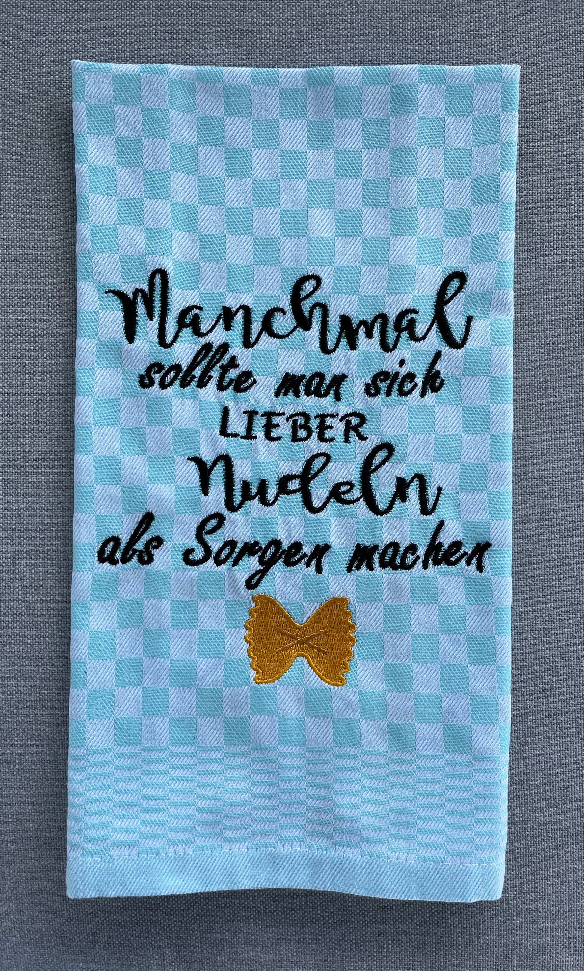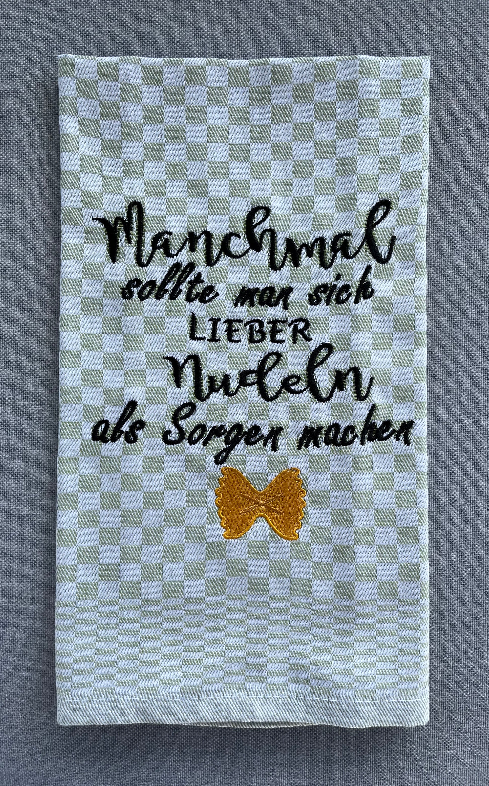 NUDELN - Geschirrtuch bestickt, Küchentuch, Küche, Geschenk, Geschenkidee, Einladung