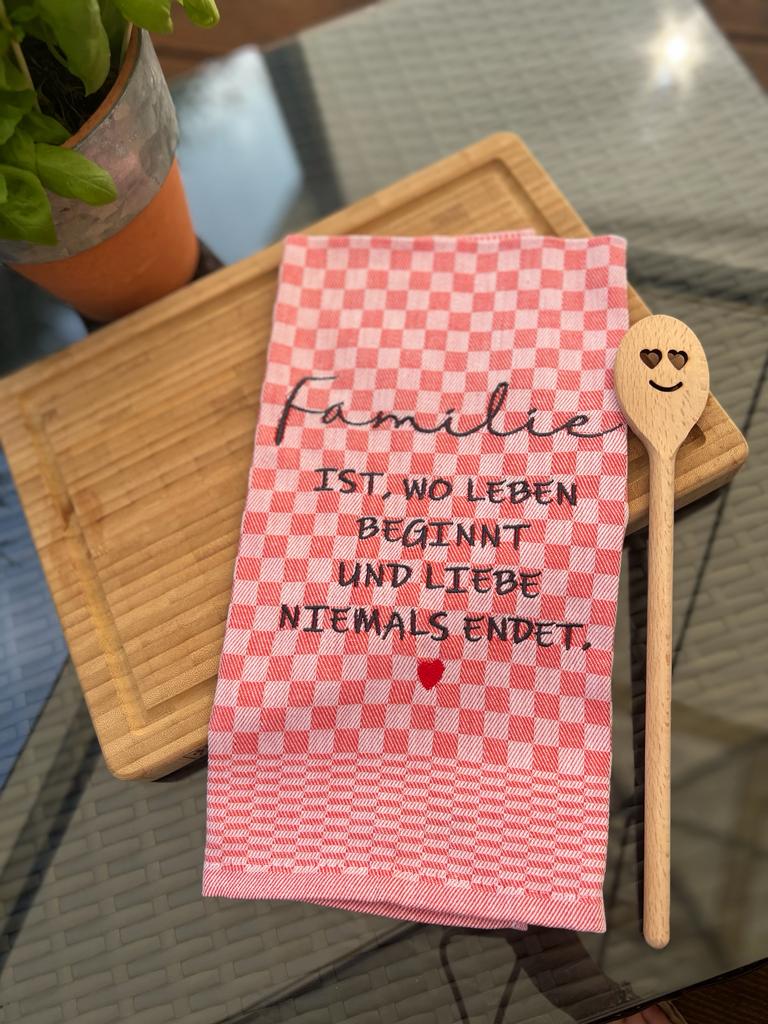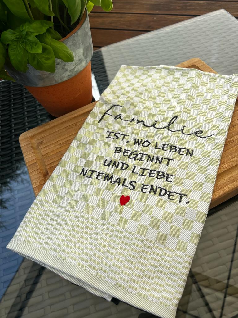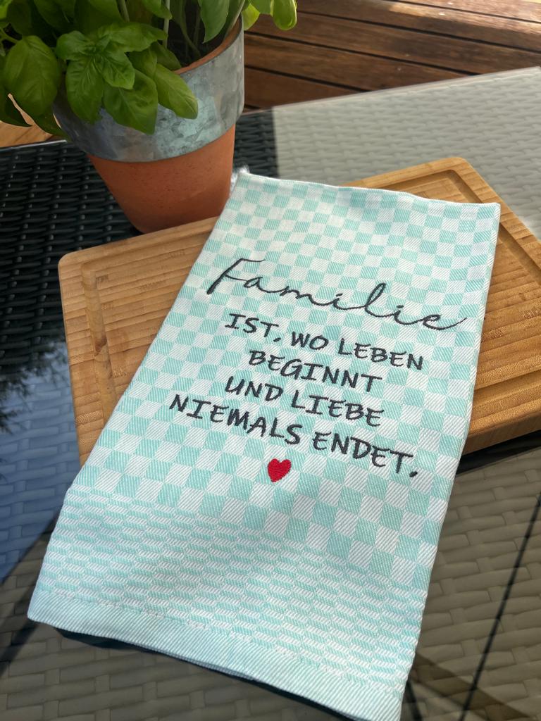 Geschirrtuch bestickt, Küchentuch, Familie ist...., Küche, Geschenk, Geschenkidee, Einladung