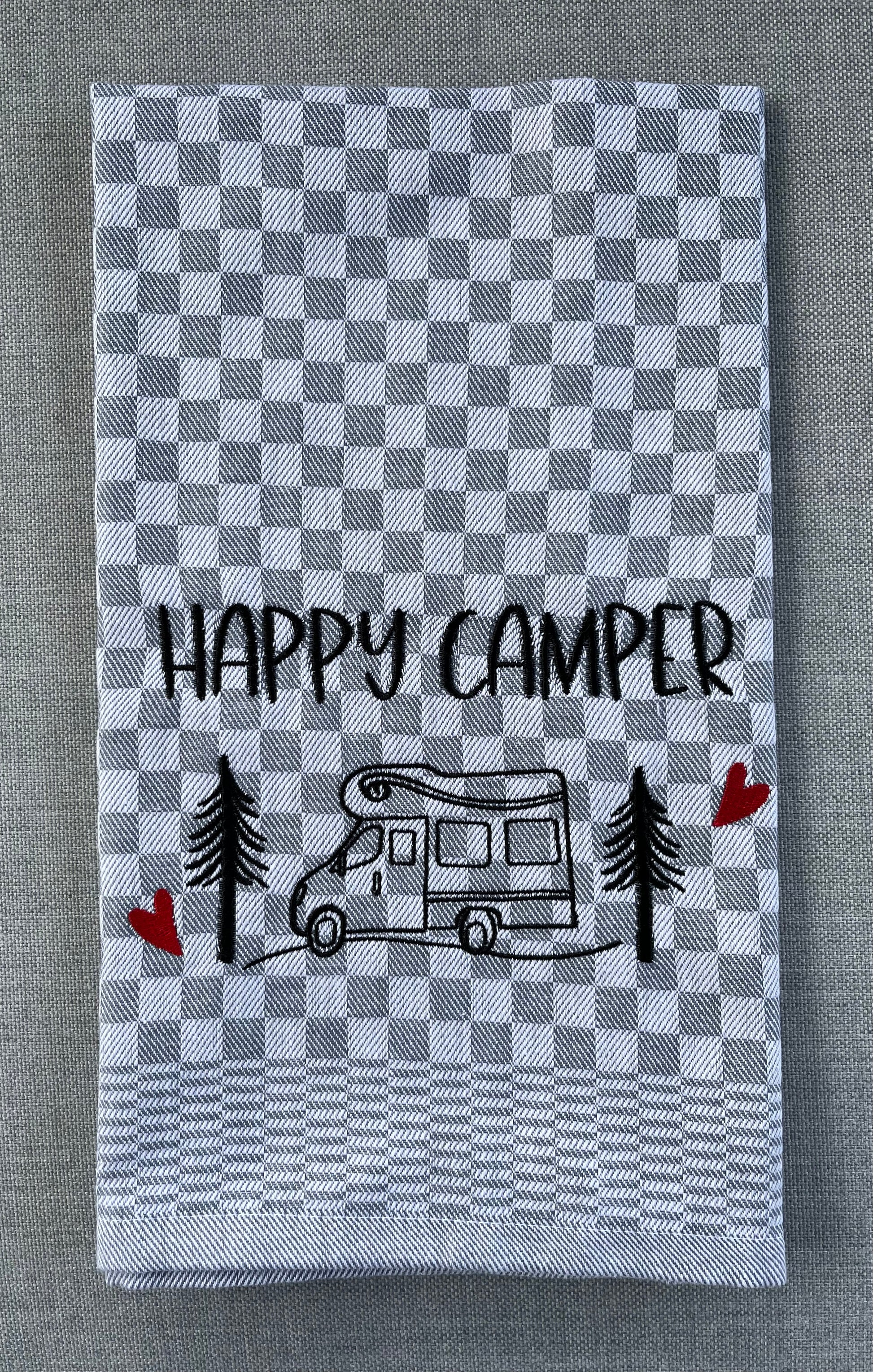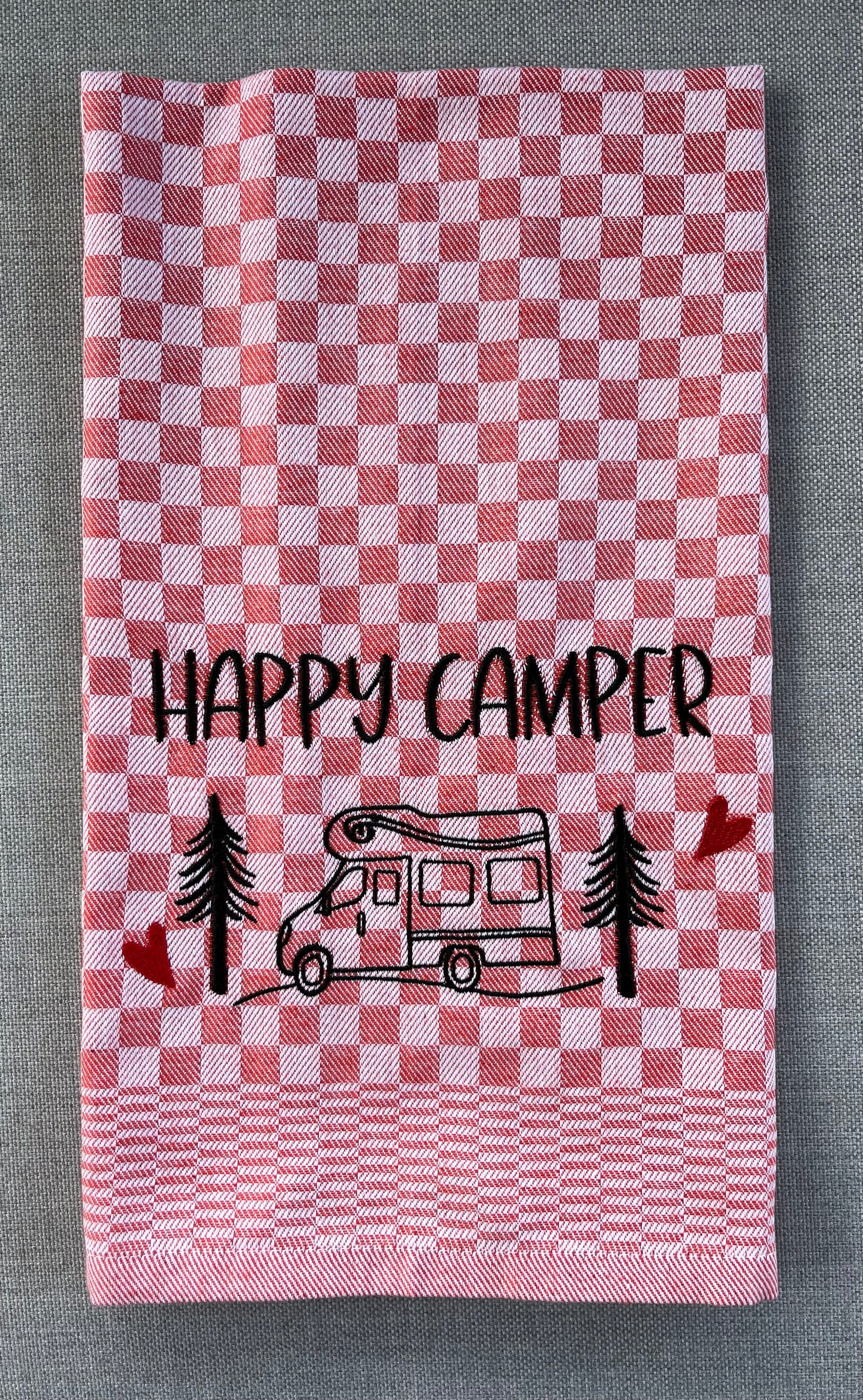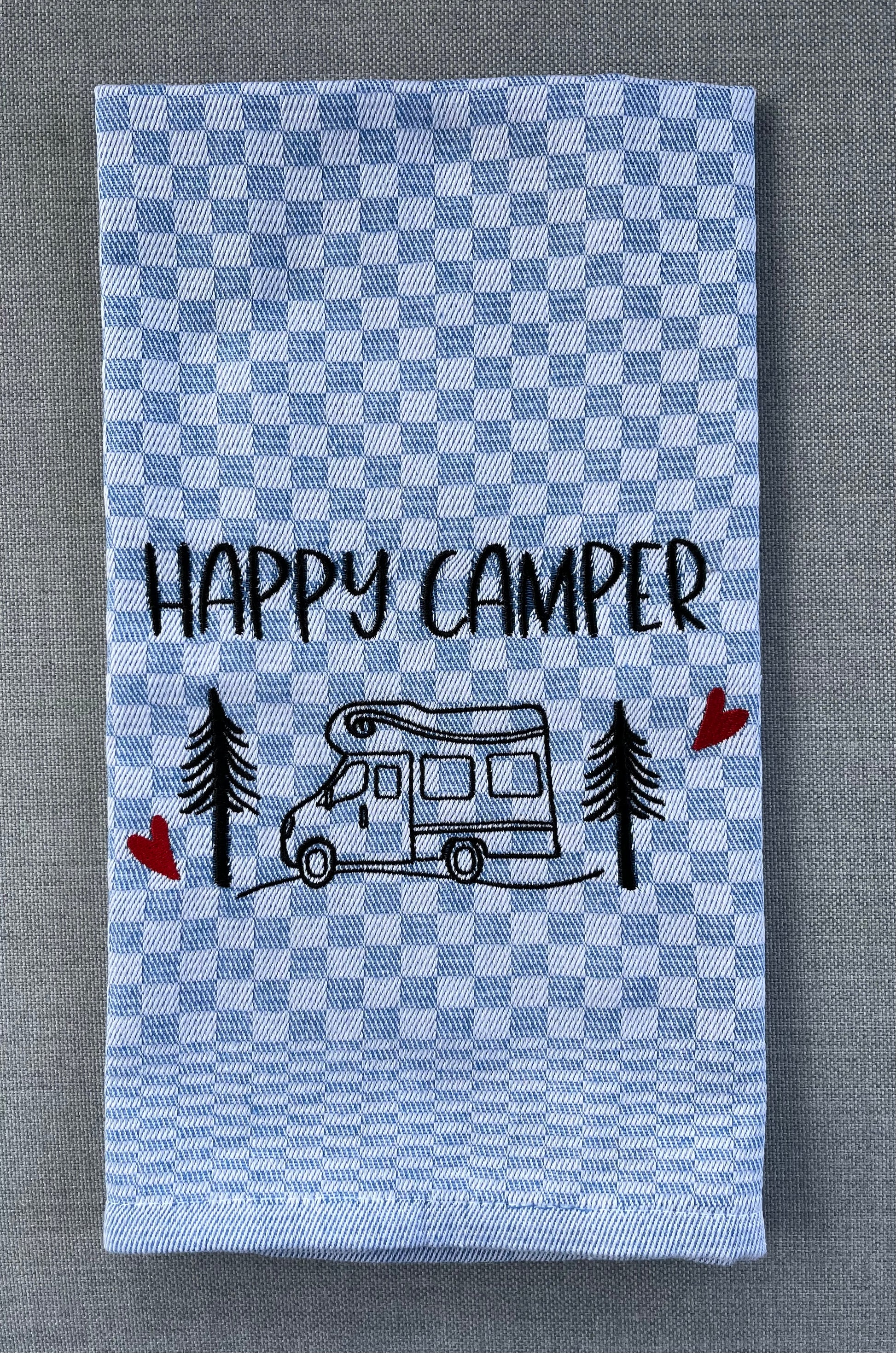 HAPPY CAMPER/WOHNMOBIL - Geschirrtuch bestickt, Küchentuch, Küche, Geschenk, Geschenkidee, Einladung
