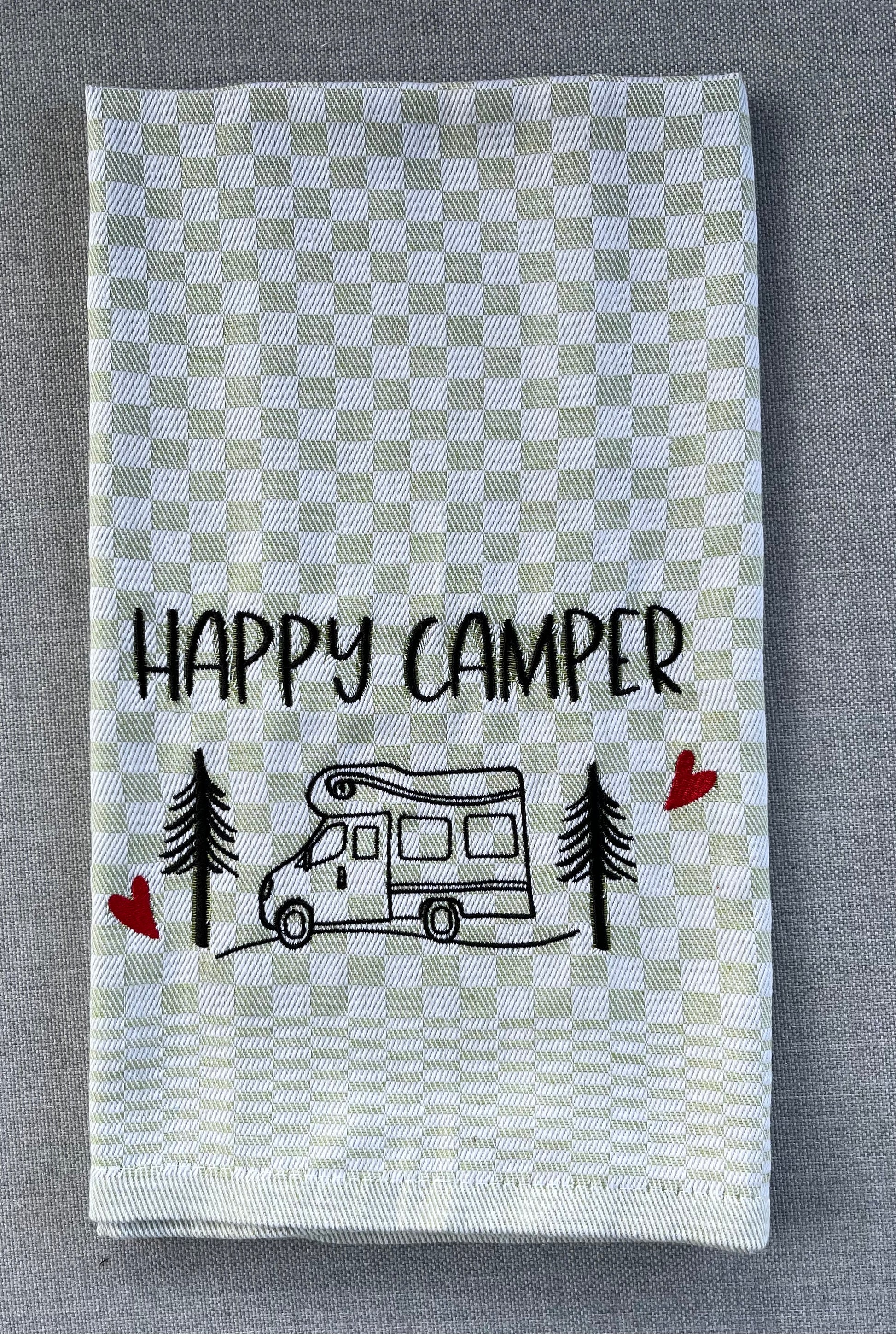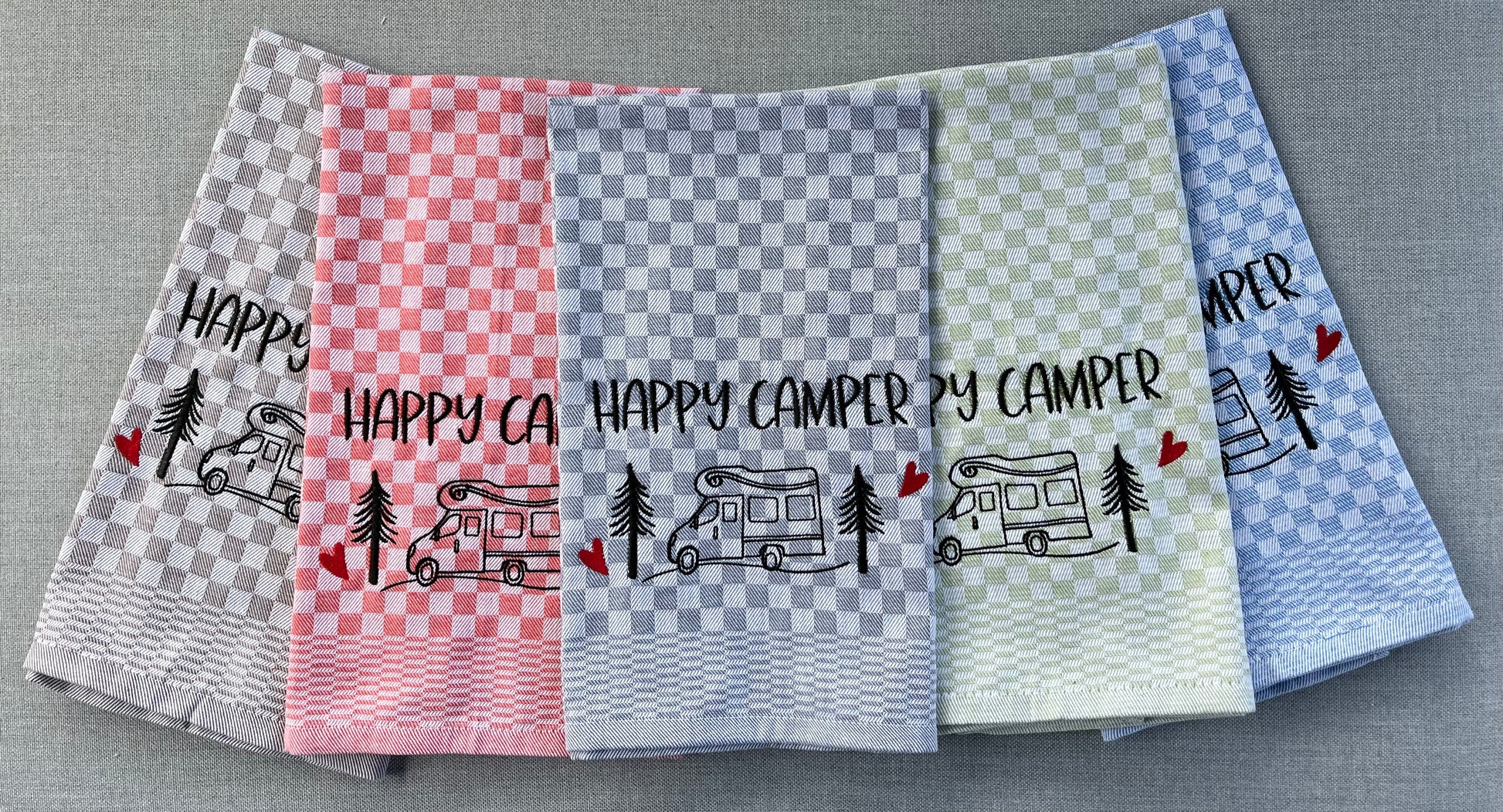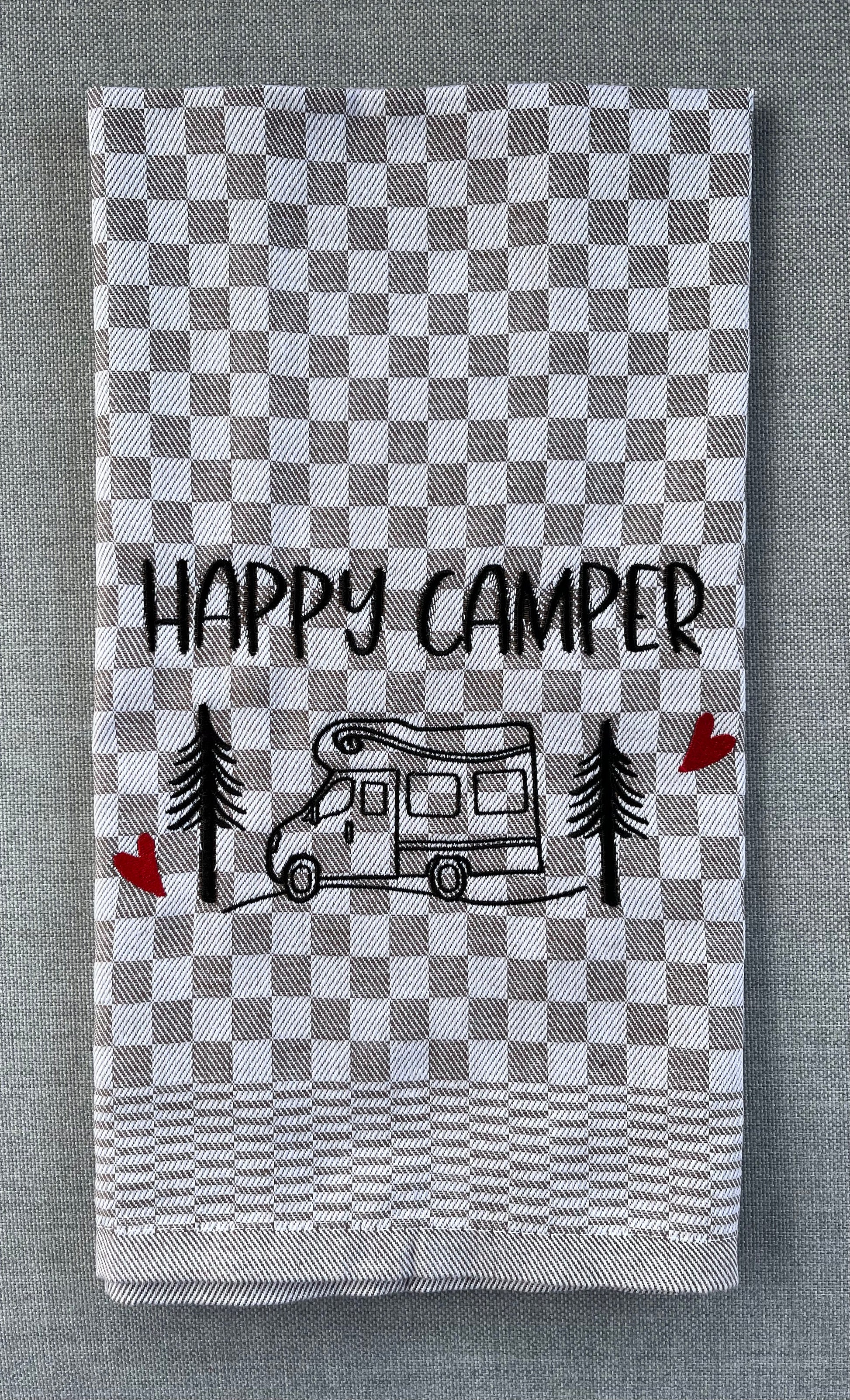 HAPPY CAMPER/WOHNMOBIL - Geschirrtuch bestickt, Küchentuch, Küche, Geschenk, Geschenkidee, Einladung