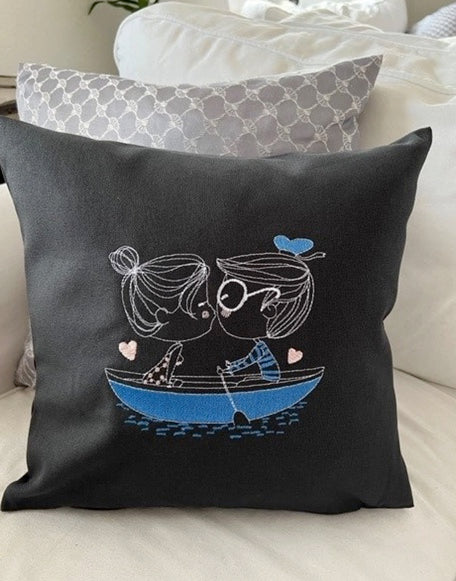 Kissen küssendes Paar 40x40cm,besticktes Kissen, Bio-Baumwollqualität Hochzeits-Geschenk, Valentinstag, Liebe, Hochzeitstag