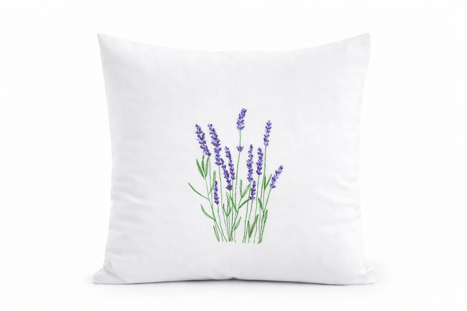 Bestickter Kissenbezug „Flieder“ – Geschenk für Blumenliebhaber