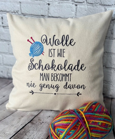 Kissenbezug bestickt, Wolle, Handarbeit, Stricken, Häkeln, Nähen, Nadelarbeit, Geschenk, Geschenkidee