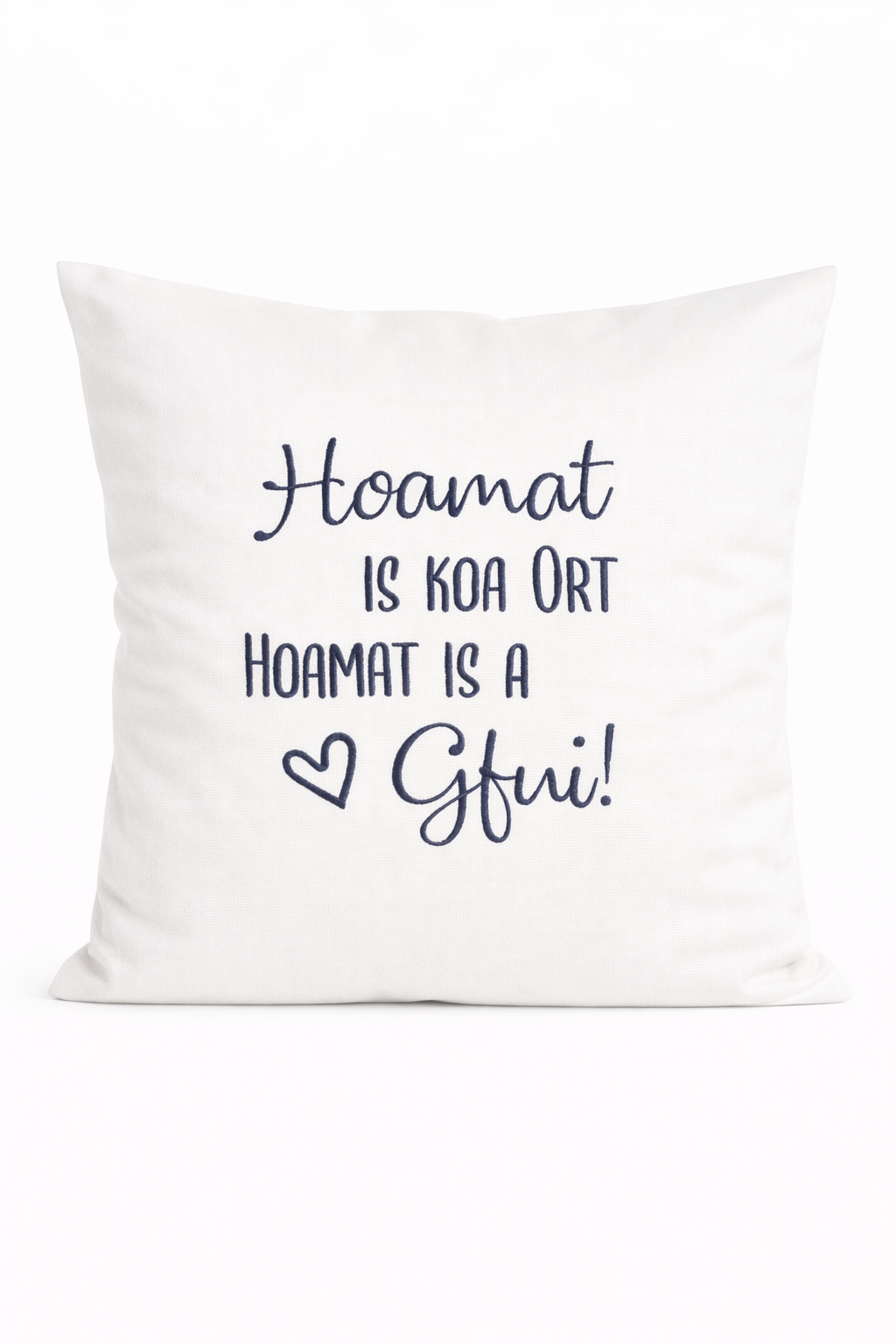 Bestickter Kissenbezug „Hoamat“ – Geschenk für Zuhause / Heimat