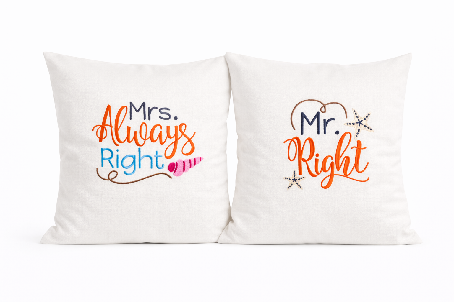 Bestickter Kissenbezug Set „Mrs&Mr Right“ – Geschenk für Hochzeit (2Kissenbezüge)